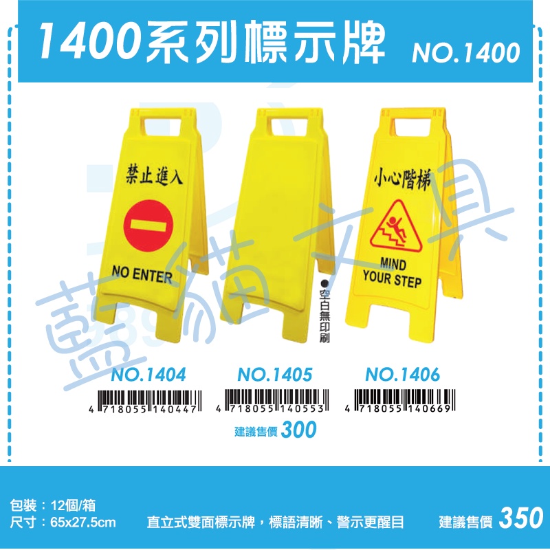 【不可超取】1400系列標示牌 摺疊告示牌 指示牌【BC02417】1405 空白直立警示牌【W.I.P】【藍貓文具】