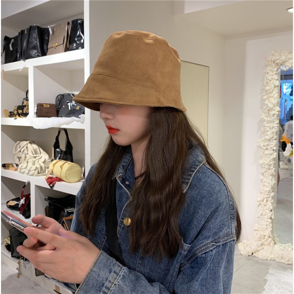 【買到現貨】熱賣 歐逆款麂皮絨小臉漁夫帽 盆帽 帽子秋冬純色漁夫帽女小眾