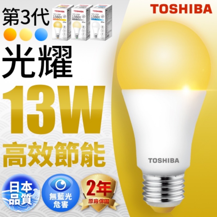 下殺 Toshiba 東芝 光耀 LED 燈泡 9.5W / 13W / 15.5W 節能 不傷眼睛 高效率 120lm