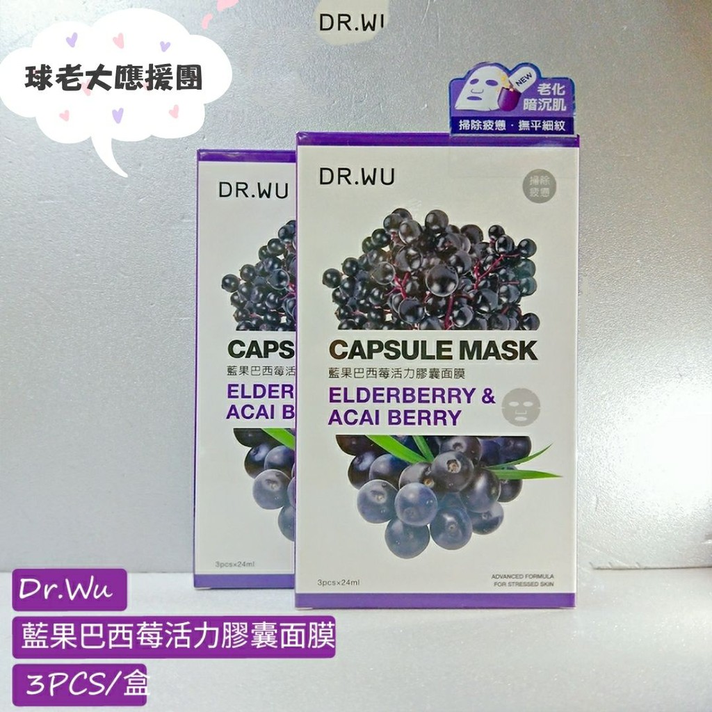 [球老大應援團] Dr.Wu 達爾膚 藍果巴西莓活力膠囊面膜 3PCS /盒 效期 2022.02