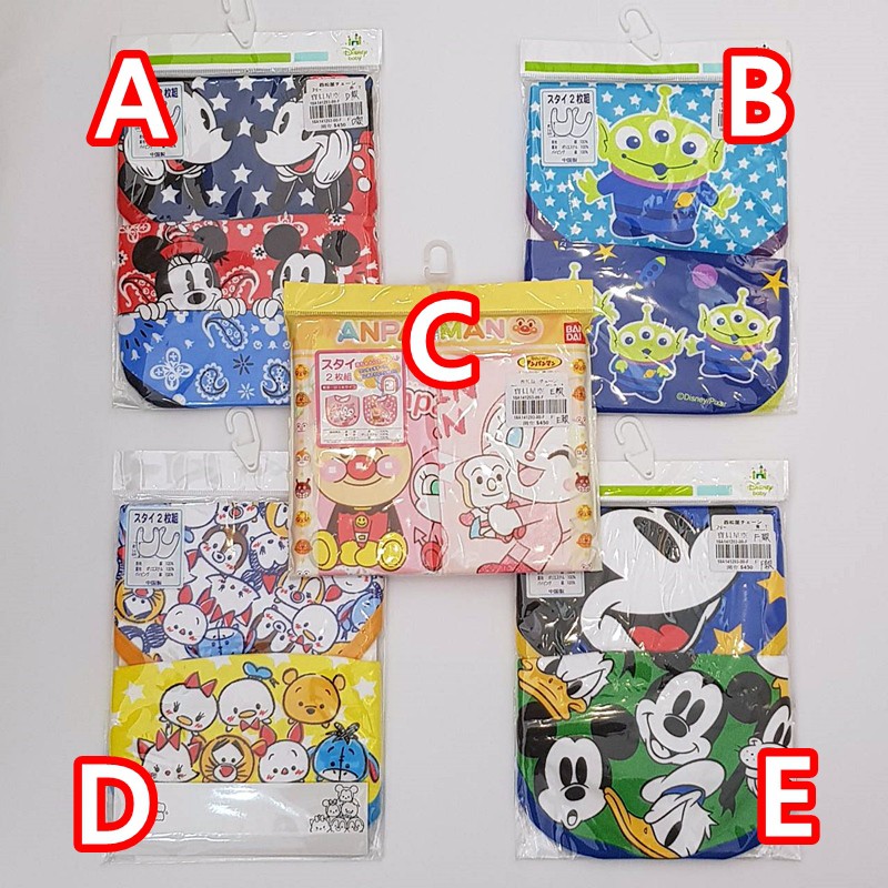 寶貝星空~日本童裝~日系童裝~西松屋圍兜~2枚組食事圍兜(米奇、麵包超人、TSUMTSUM)