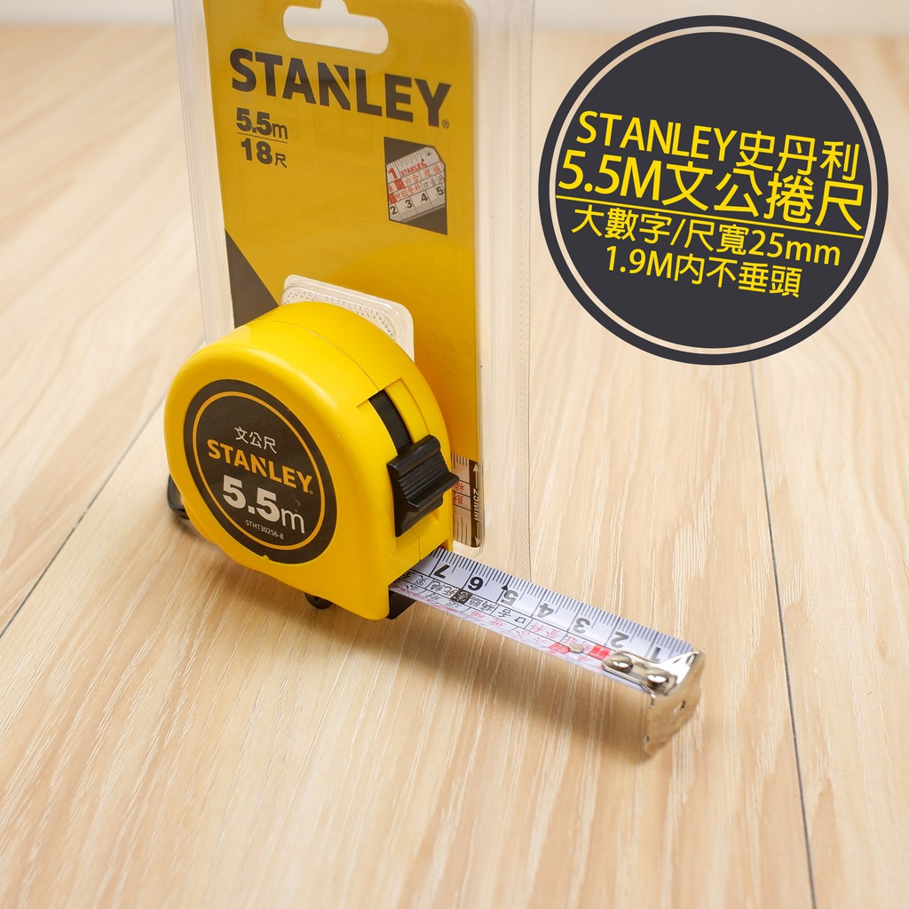 附發票「工具仁」美國 史丹利 25MM寬版 捲尺 5.5M 不垂頭 文公尺 魯班尺 米尺 風水 鋼捲尺 測量