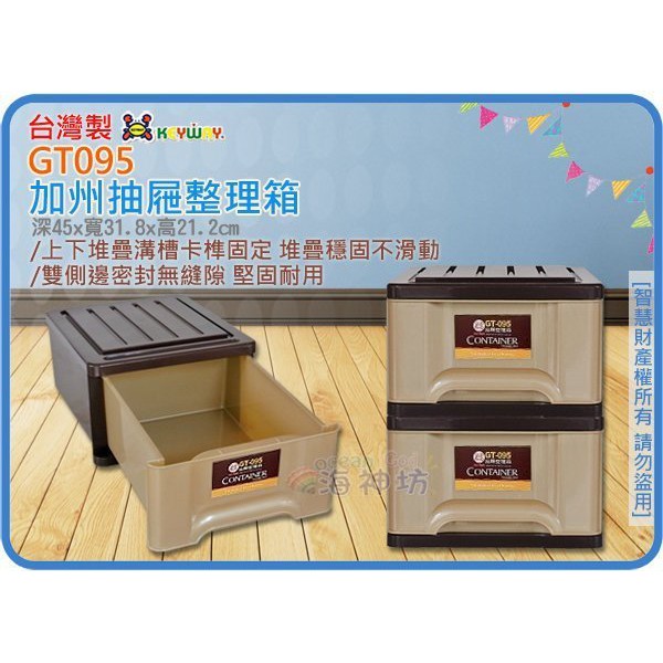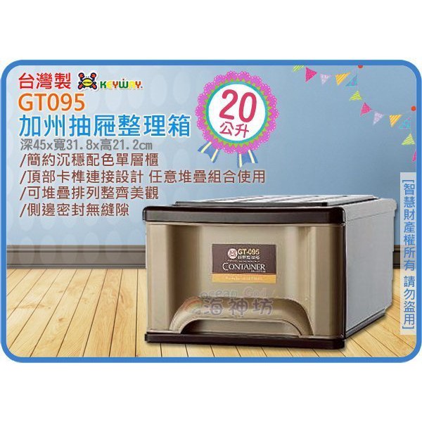 =海神坊=台灣製 KEYWAY GT095 單層櫃 加州抽屜整理箱 收納箱 收納櫃 分類置物箱 20L