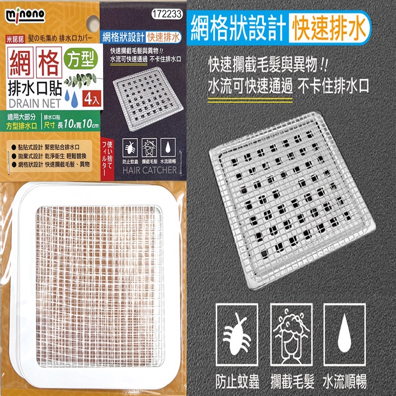 網格排水口貼方型4入,5入【緣屋百貨】天天出貨 排水孔網格 排水孔 防臭落水頭 排水孔防臭 地漏蓋 防蟲排水孔