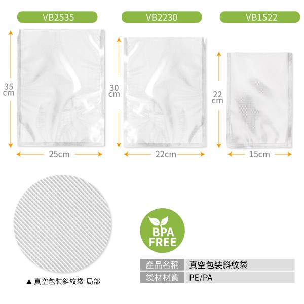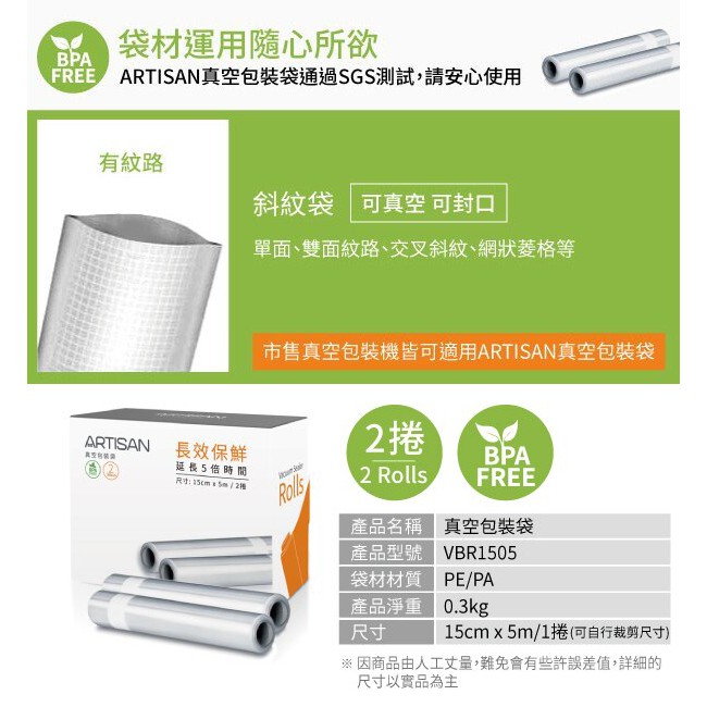 ARTISAN奧堤森 網紋式真空包裝袋 VB1522 VB2230 VB2535 VBR1505