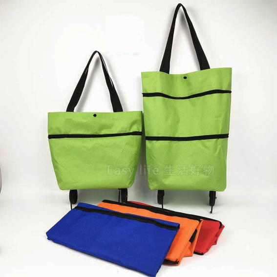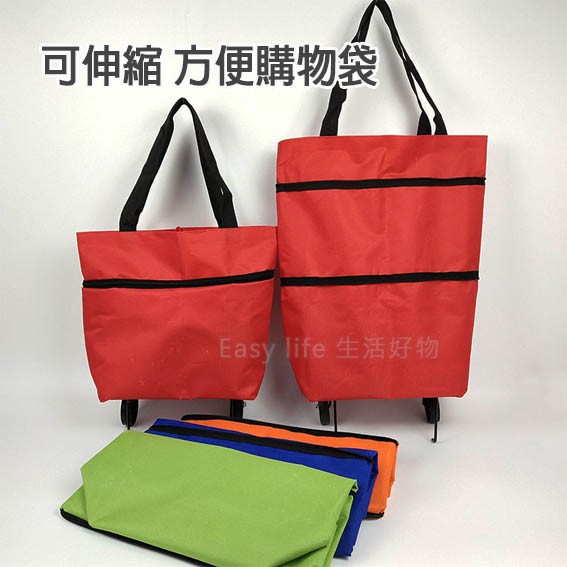 ║台灣/現貨/快速║ 韓版 輕便走拉手提兩用 折疊拖輪包 購物包 購物袋 買菜 購物 車輪包 買菜車 收納 拖輪袋