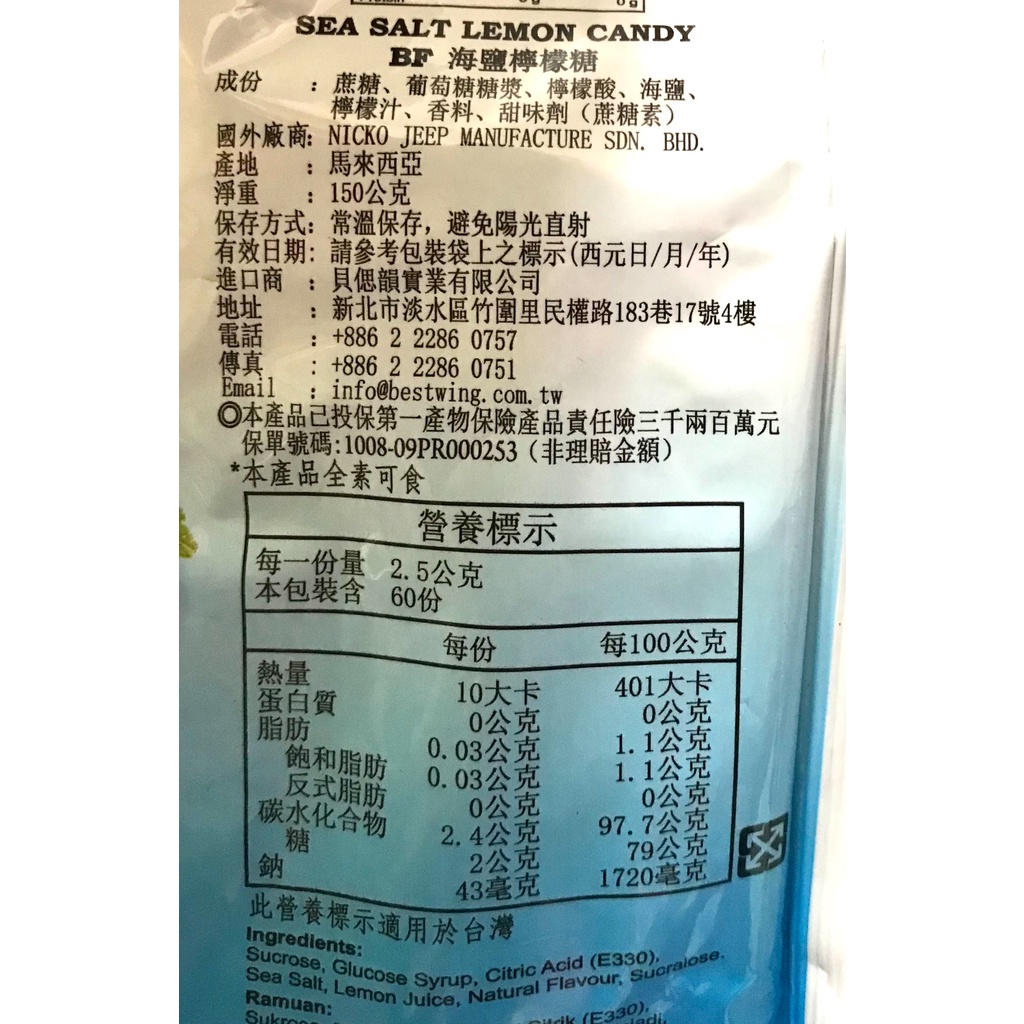 <佳泓零食行>BF薄荷岩鹽檸檬糖/BF海鹽檸檬糖