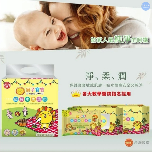 ⭐️QBの家⭐️【台灣現貨】獅子寶寶濕紙巾 (快速出貨)超純水厚濕紙巾 不連抽 獅子寶寶 『台灣公司授權經銷商』