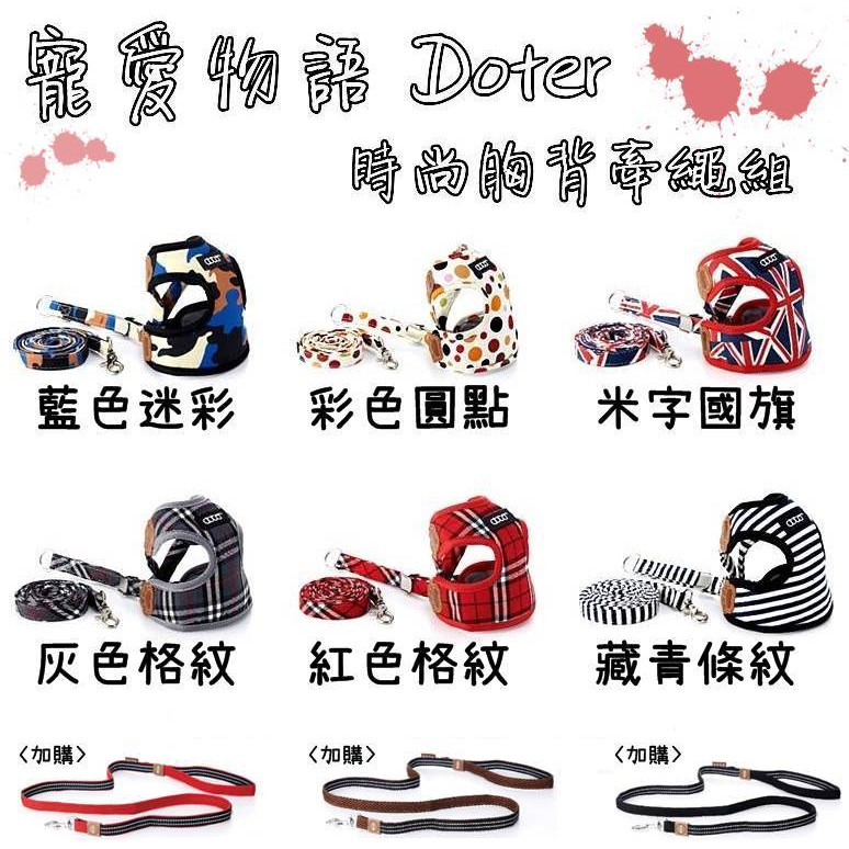 寵愛物語 Doter 時尚胸背牽繩組 迷彩 條紋 國旗 圓點 格紋 牽繩 牽繩組 寵物牽繩 狗牽繩