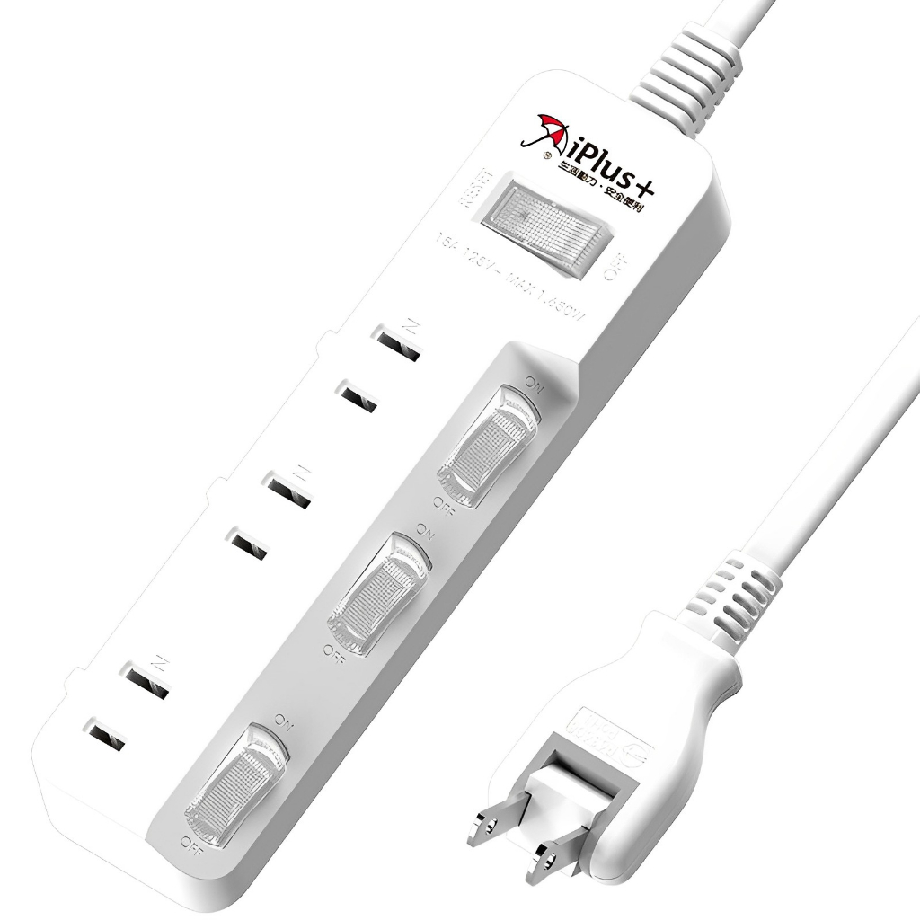 Plus+保護傘 2P延長線 旋轉插頭 4切3座 (PU-2436)