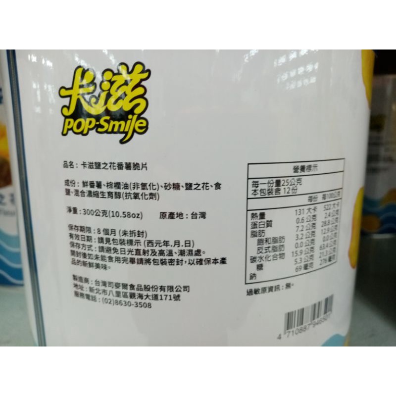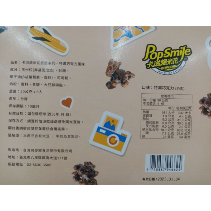卡滋鹽之花蕃薯脆片300公克/桶 台農57號、爆米花旅遊系列-特濃巧克力、焦糖牛奶30gX6入