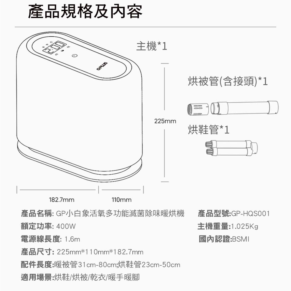 【G-PLUS】 GP-HQS001 GP小白象 活氧多功能滅菌除味暖烘機 (贈烘衣袋) 烘被機 烘鞋機