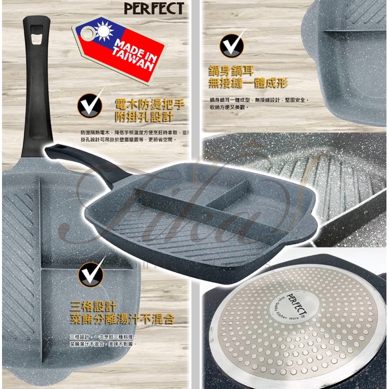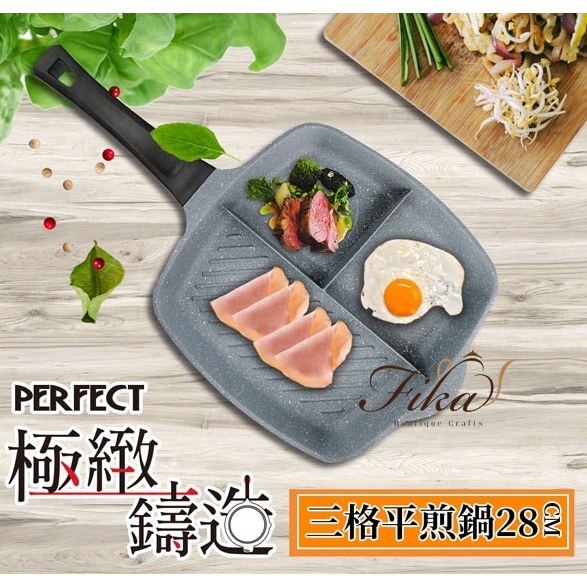 ♛BEING餐具♛台灣製 理想牌 28cm 極緻鑄造不沾三格平煎鍋 煎蛋鍋 早餐鍋 三格煎盤 露營煎盤 不沾煎盤