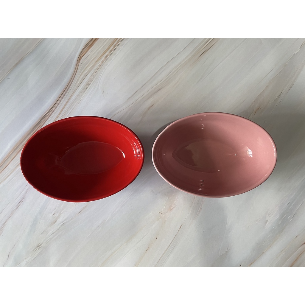 【愛咪雜貨小舖】全新《LE CREUSET》陶瓷 橢圓形湯碗 17cm 湯碗 飯碗 櫻桃紅 薔薇粉