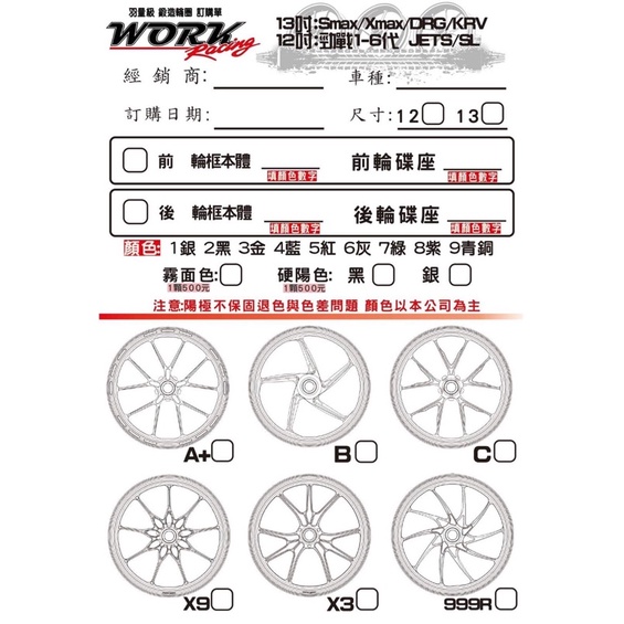 XC』鯊魚 work racing 鍛造輪框 鍛框 內碟 A C D E F V K P G Y款 勁戰六代/水冷BWS