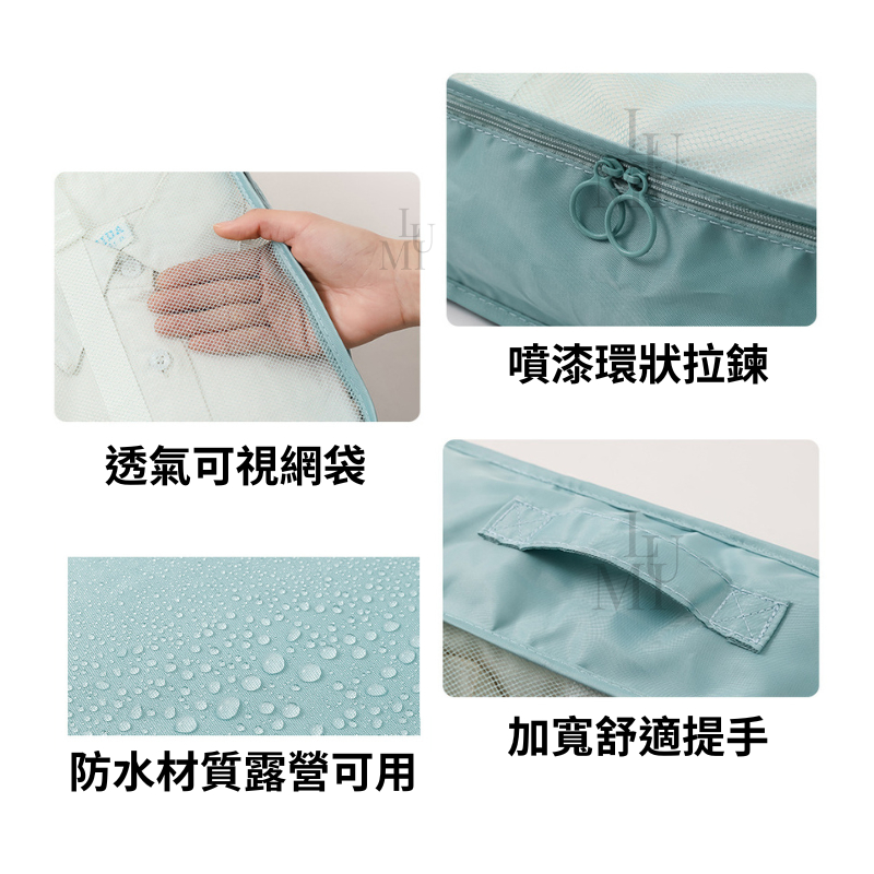 台灣出貨|旅行收納袋 防水加厚七件組 行李箱衣物收納包 分裝收納包 盥洗包 束口袋 洗漱包 內衣收納袋 鞋袋 平口袋