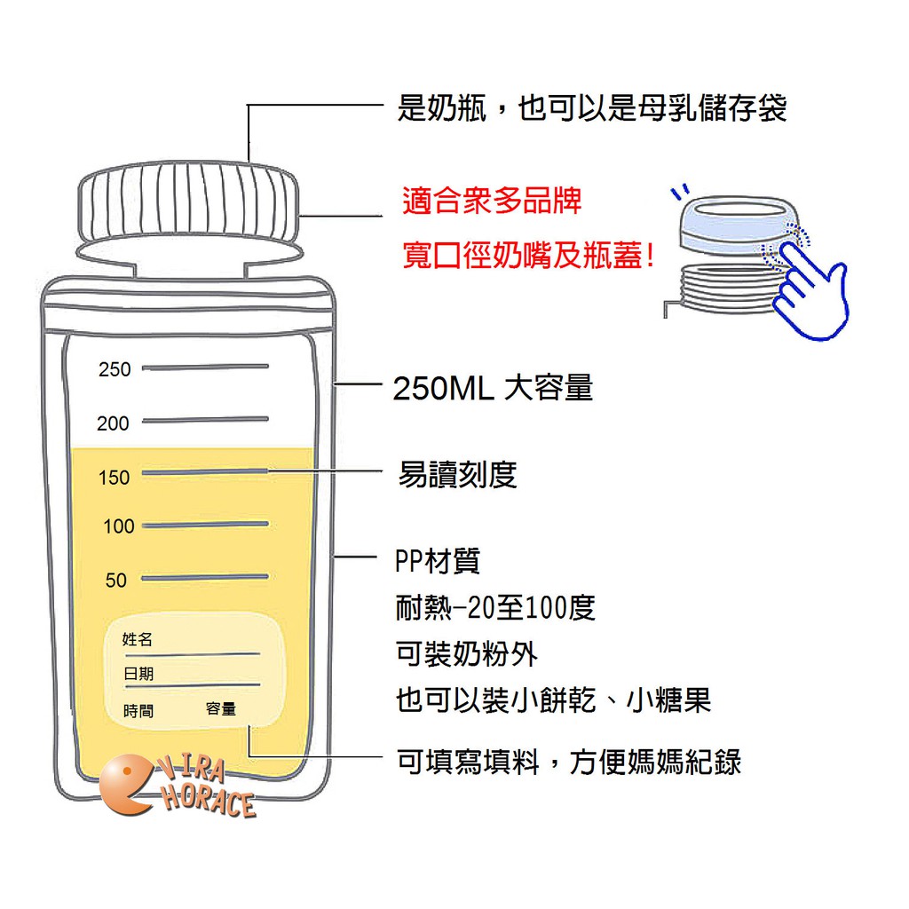 六甲村寬口拋棄式奶瓶補充包250MLx5個(寬口徑拋棄式奶瓶)外出旅行最佳好幫手 HORACE