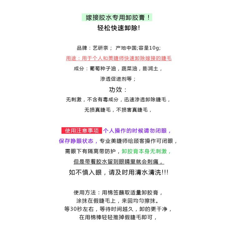 『台現』 100%正品✨ 特惠藝研奈卸睫毛嫁接美睫解膠劑不刺激卸膠膏卸睫毛膏卸除膏 小紅書推薦