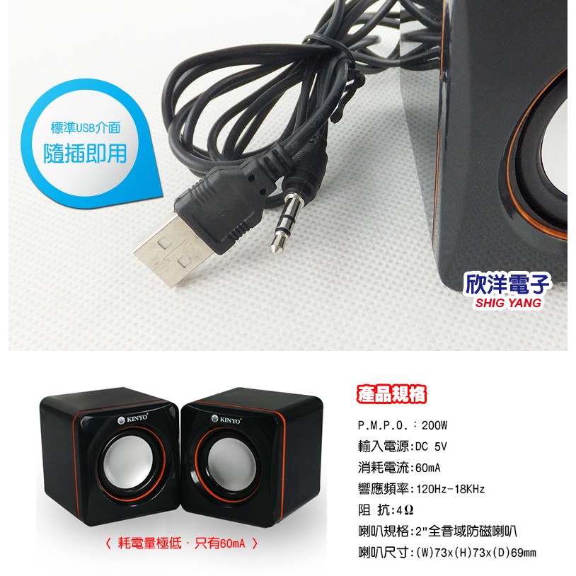 KINYO USB供電多媒體音箱 (US-202) 迷你筆電專用小喇叭 電腦 筆電 USB 隨身碟 硬碟 行動電源