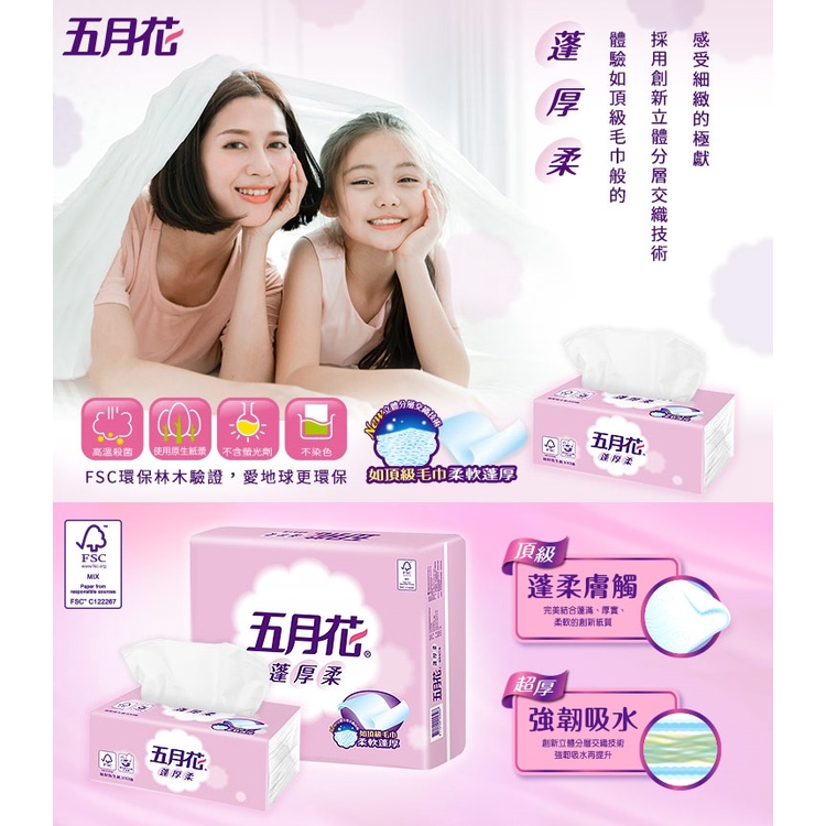 五月花 蓬厚柔 頂級 抽取 衛生紙 100抽 x 72包 / 箱