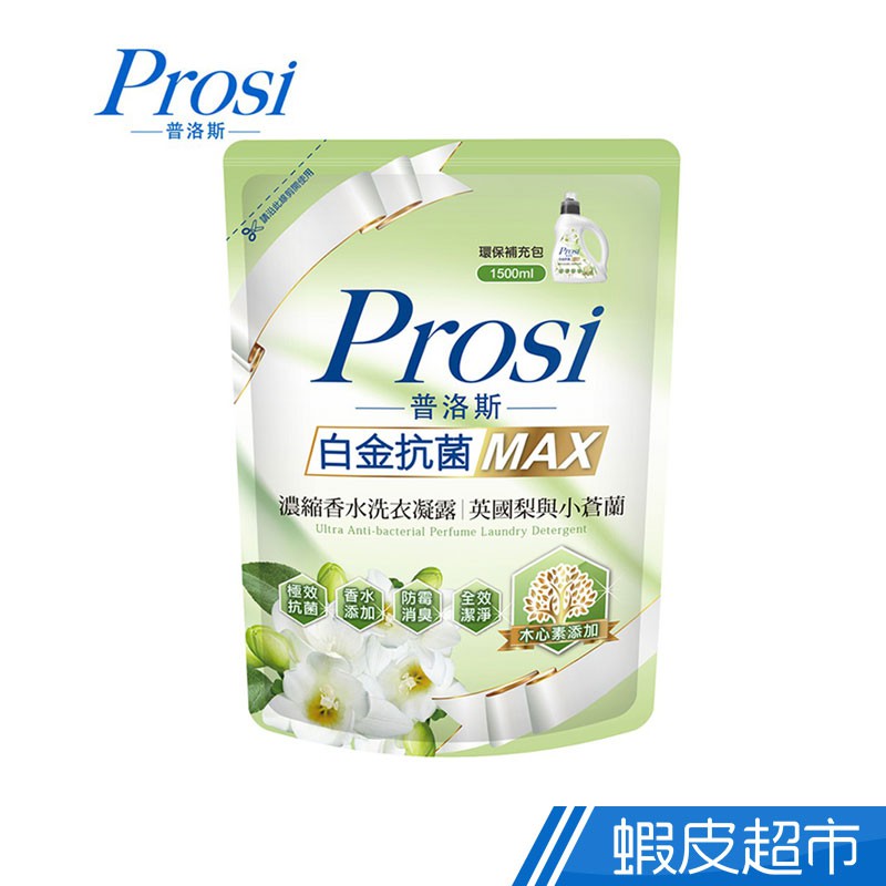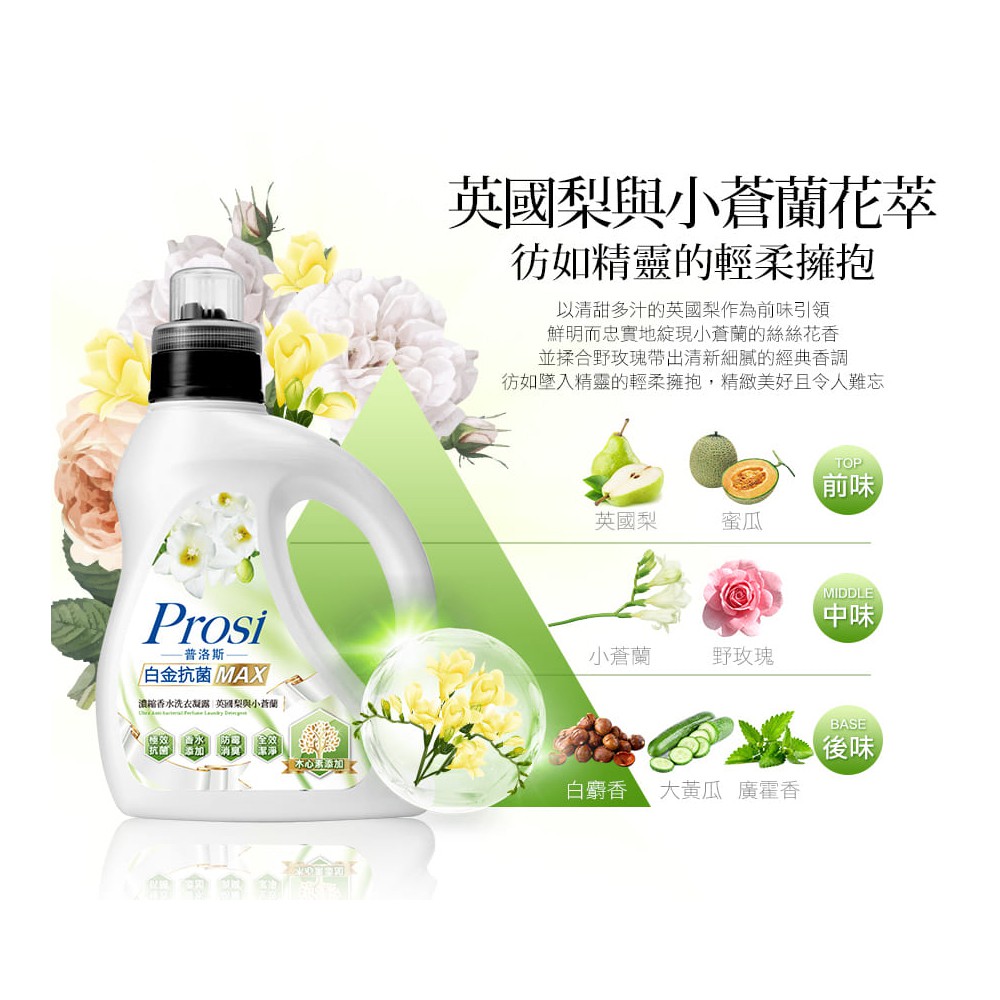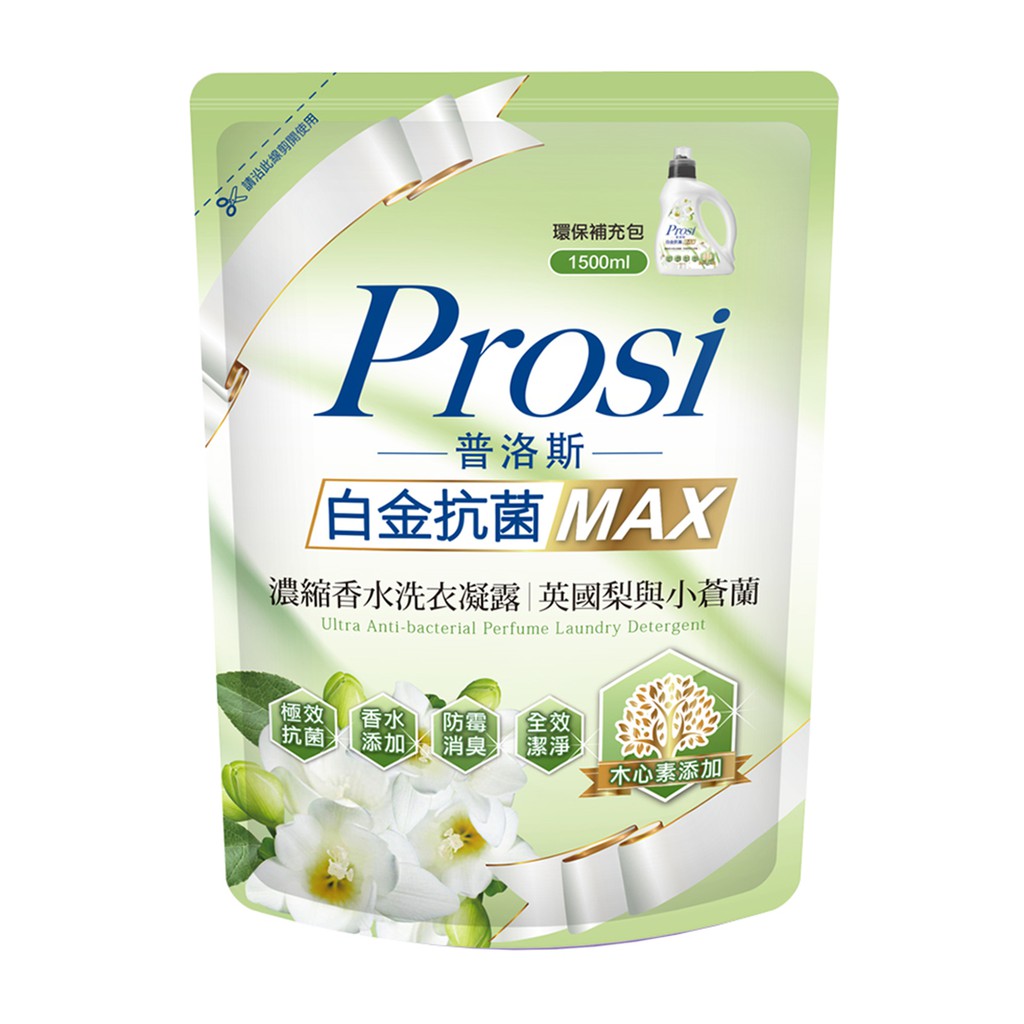 Prosi普洛斯 白金抗菌MAX濃縮香水洗衣凝露 英國梨與小蒼蘭1500mlx8包 廠商直送