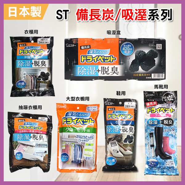 日本製《ST備長炭 吸溼小包 鞋用/衣櫃用/抽屜衣櫃用/大型衣櫥用/馬靴用》除濕包 除濕劑 乾燥劑【飛兒】