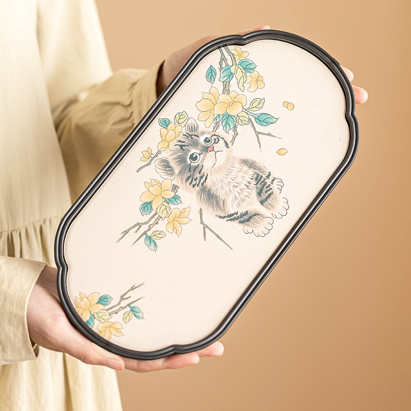 萌貓速干 茶盤壺墊 新中式 功夫茶具 小型茶臺 密胺吸水 干泡臺 茶道 防滑茶墊