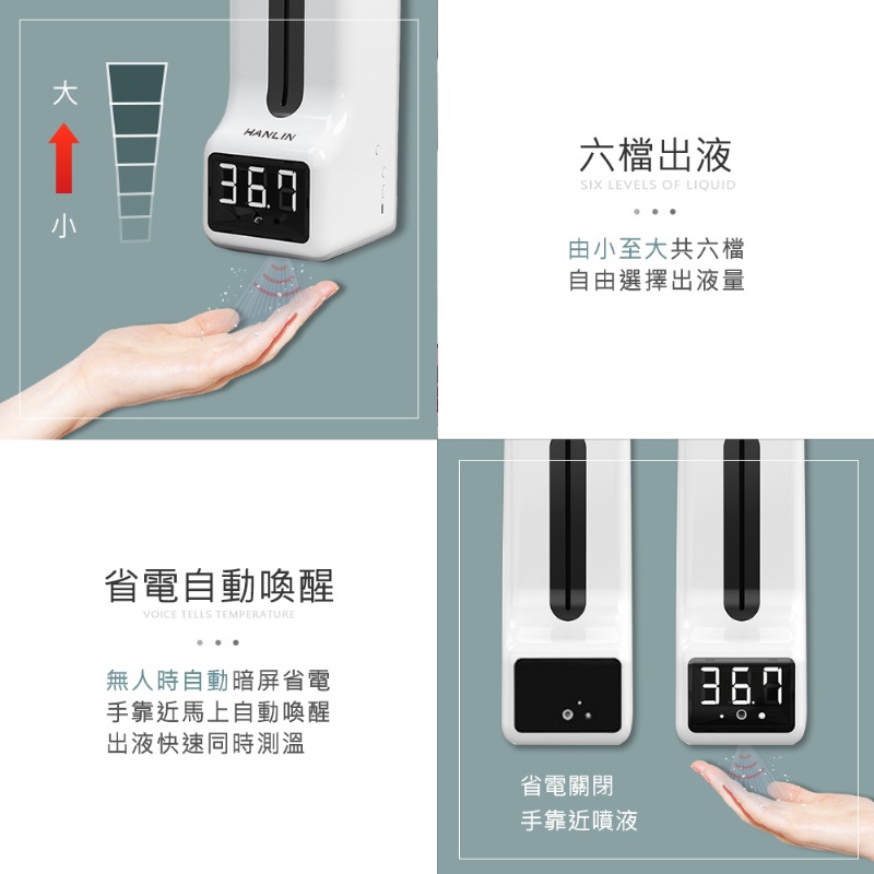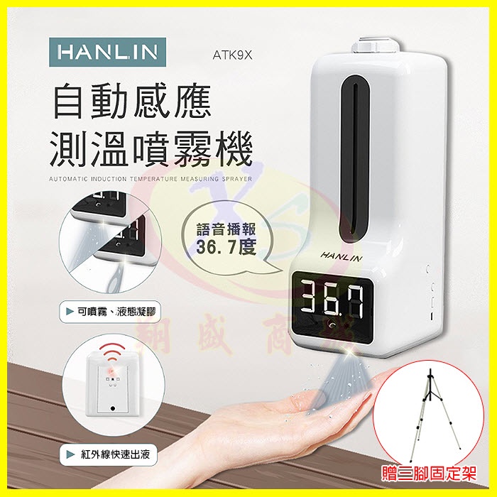HANLIN ATK9X 自動感應測溫噴霧機 12國語言 測體溫自動酒精噴霧器 消毒乾洗手乳機 自動播報測量溫度支架儀