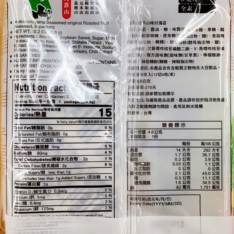 古早味零食 元本山味付海苔 元本山海苔 原味海苔片 原味口味 海苔片 海苔薄片 台灣海苔 配飯 元本山 素食 全素