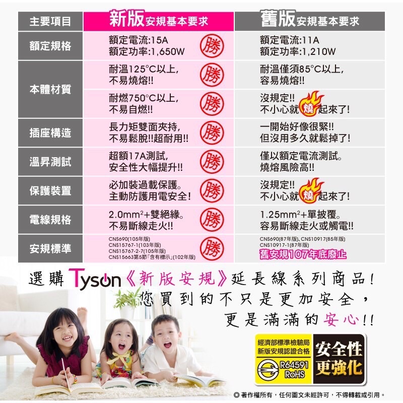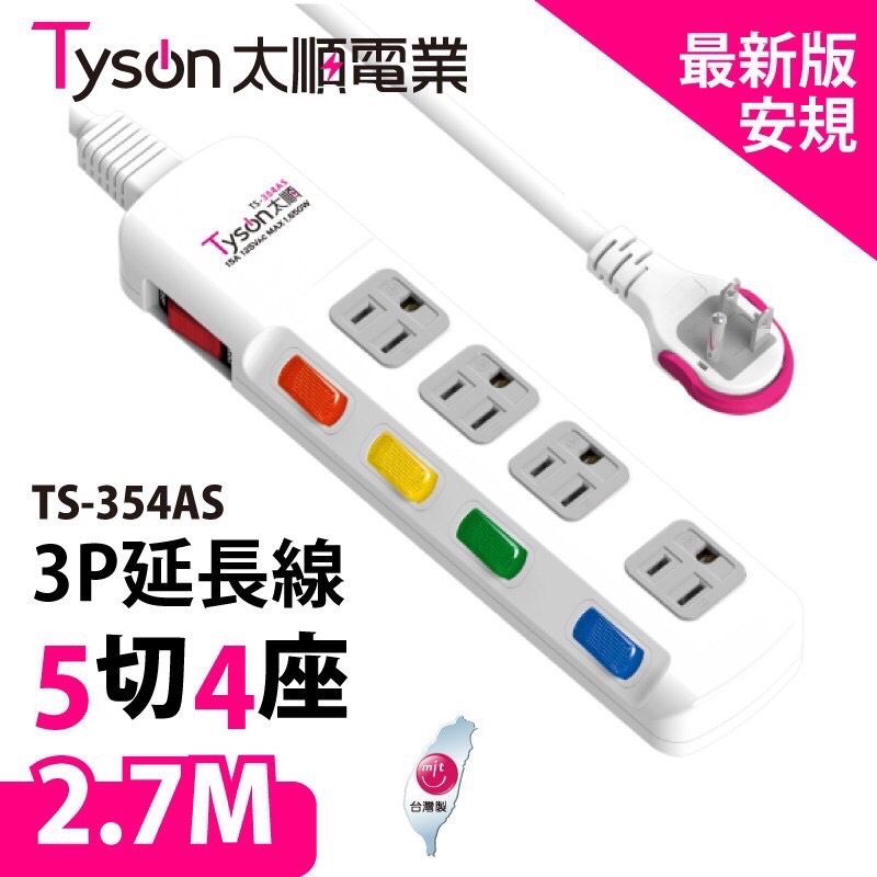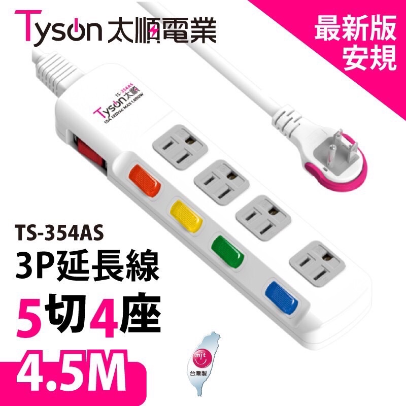 Tyson太順電業 台灣製造 5切4座3P延長線 TS-354AS 耐熱/防火/防雷擊
