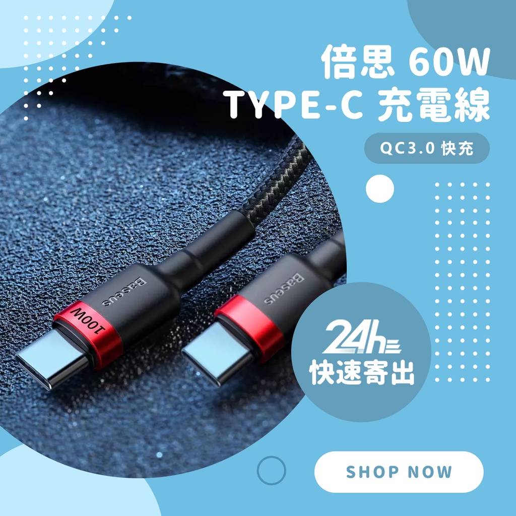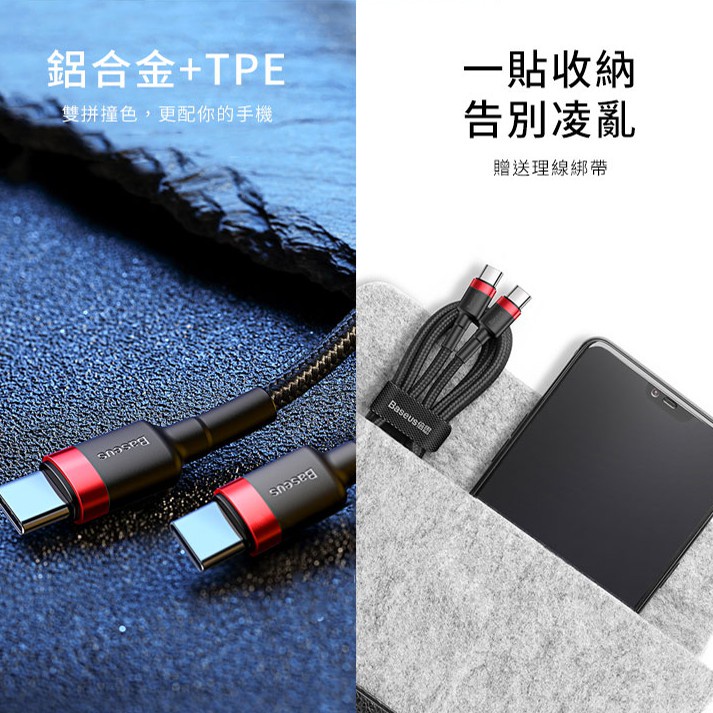 Baseus倍思 卡福樂Type-C PD2.0 60W 快充數據線 閃充充電線100cm/200cm ⚝