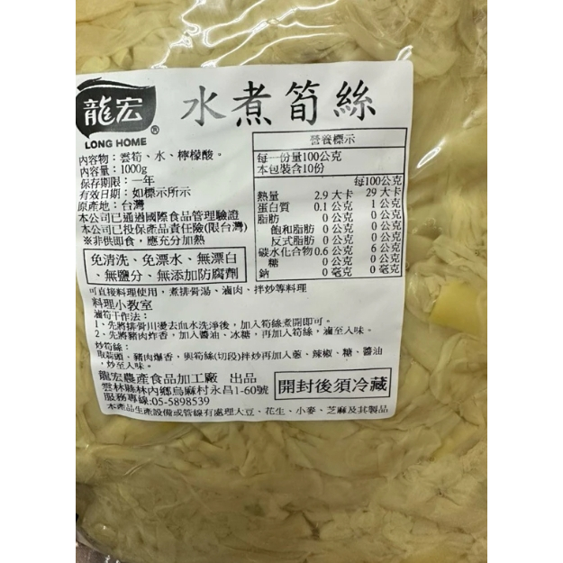【紅啪啪】🔴龍宏 水煮筍絲 筍絲 滷肉筍絲 排骨湯筍絲 1000g