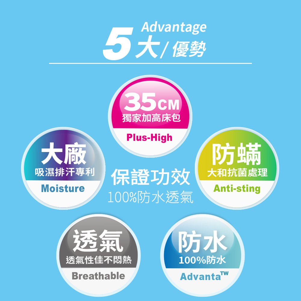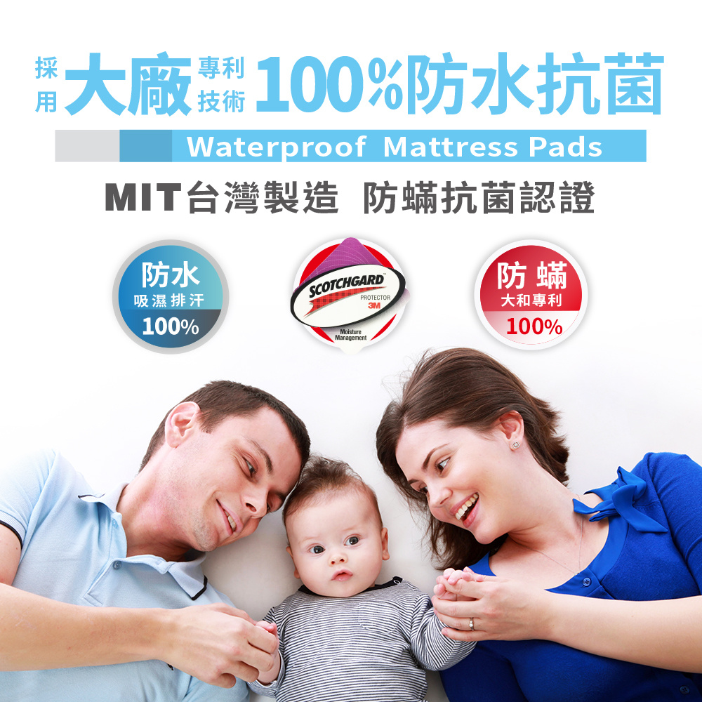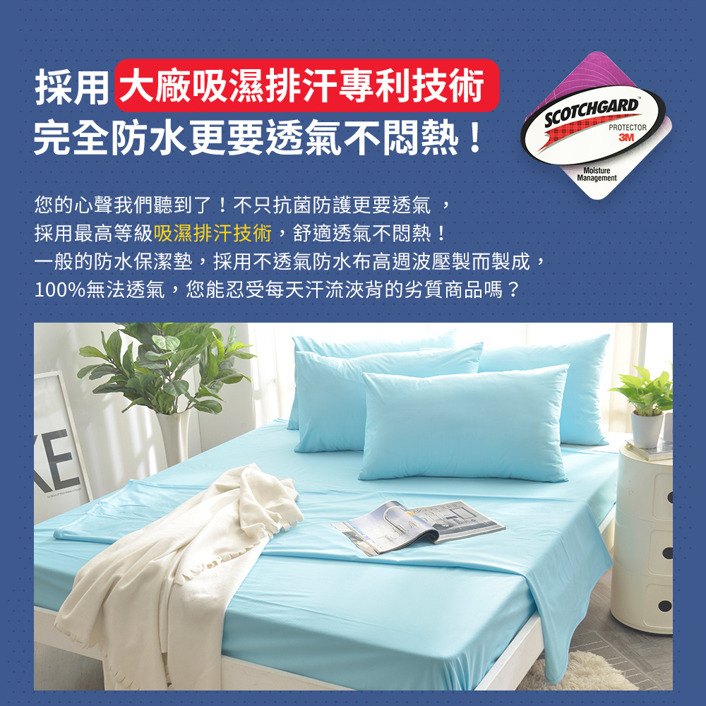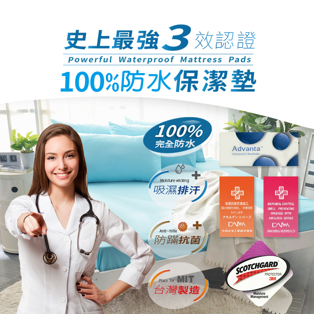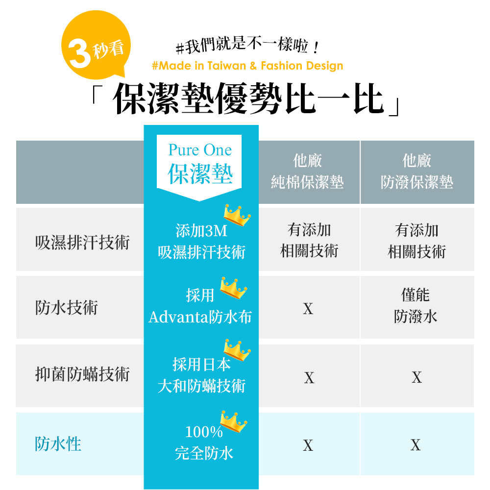 PureOne 台灣製 100%防水 護理級 防蟎抗菌床包式 防水保潔墊 單人保潔墊/保潔墊雙人/加大/特大/枕套P21