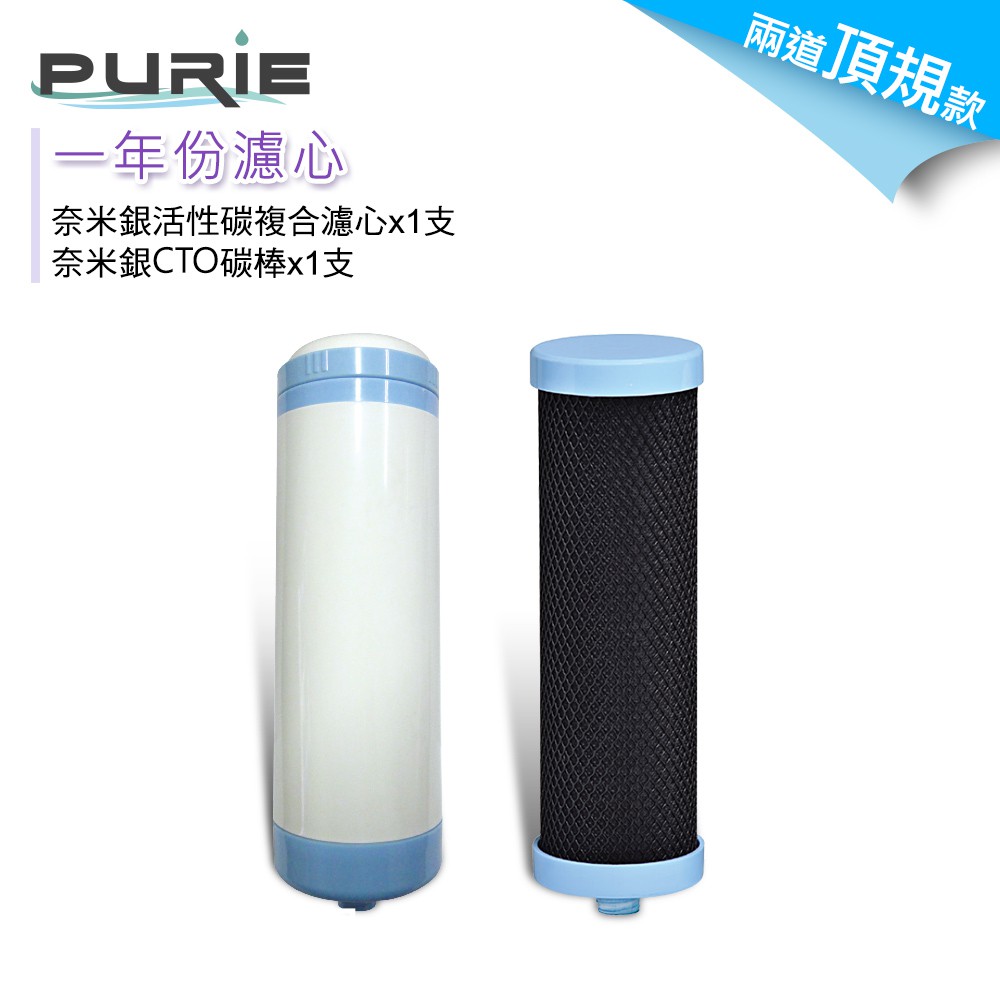 Purie 普瑞 兩道淨水器頂規款一年份專用濾心組合