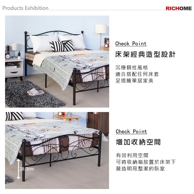 RICHOME 法蘭5尺雙人床(只有床架) 5呎床架 5*6 雙人床架 工業風鐵床架 租屋宿舍床 現代風民宿 BE255