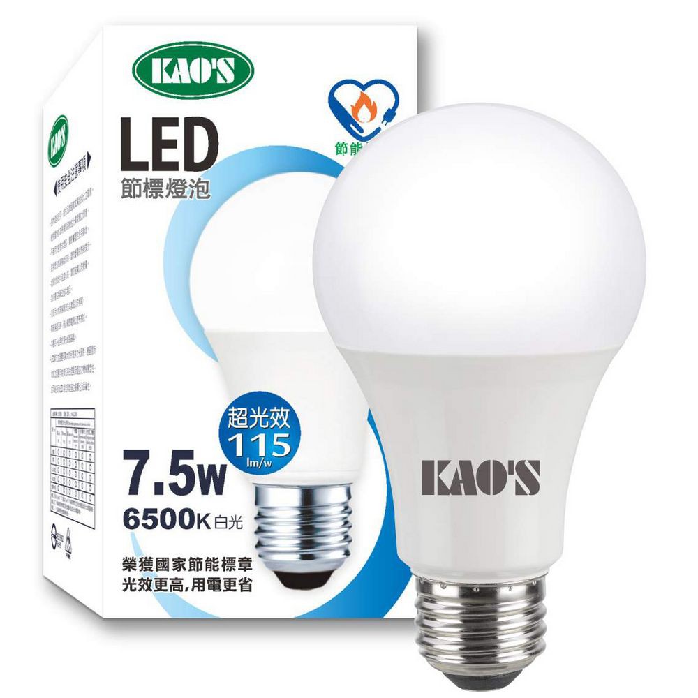 KAO'S LED 高效能 無藍光 E27 7.5w 電燈泡 高光效 球泡燈 省電燈泡 LED燈泡 CNS 節能標章