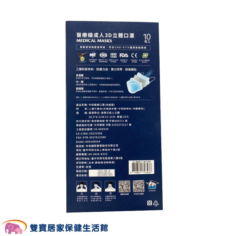 令和醫用口罩10入KF94 台灣製 4D口罩 雙鋼印 韓版口罩 醫療口罩 成人立體口罩 摺疊型 立體口罩 魚口口罩