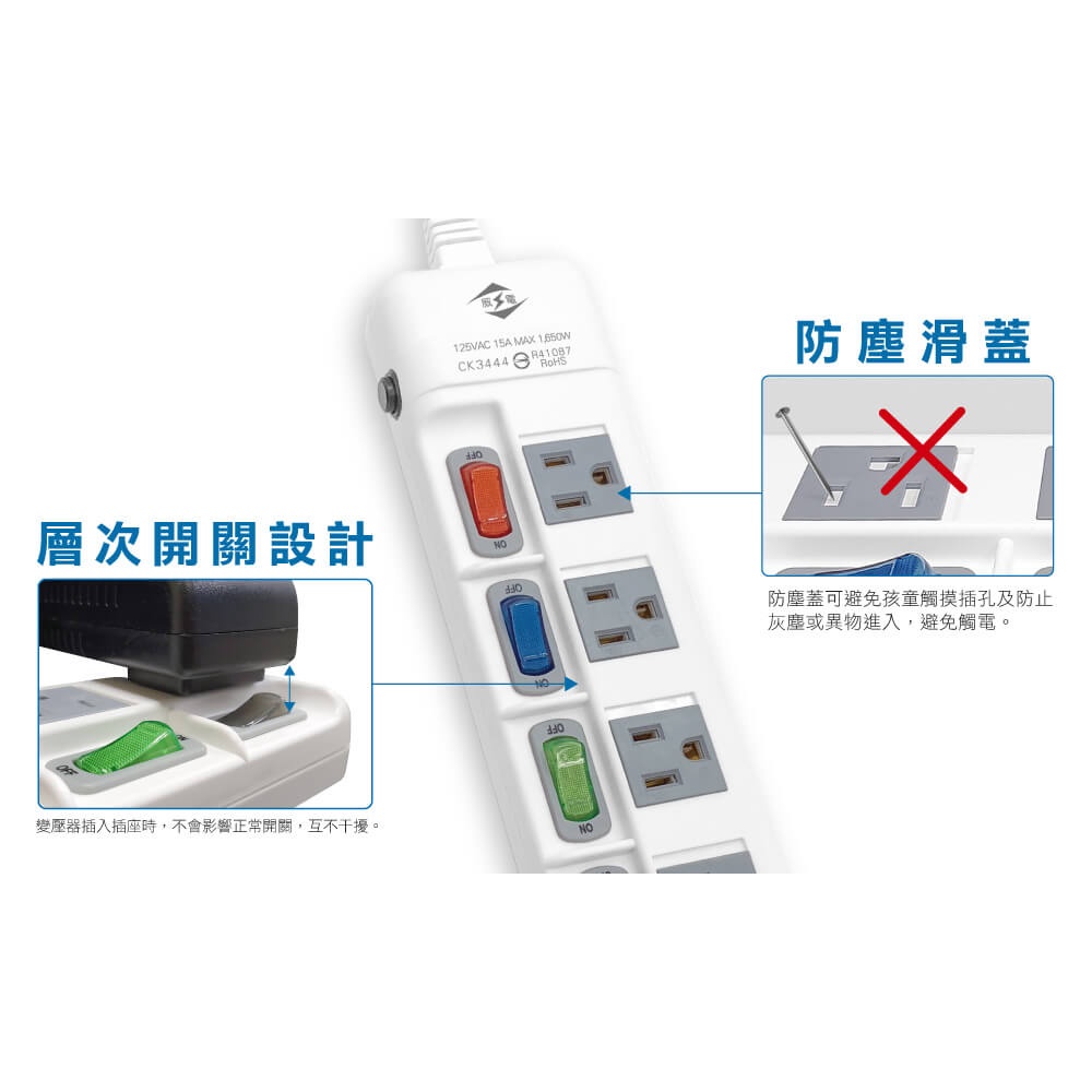 【威電 WEITIEN】過載斷電4開4座電源延長線 - CK3444 6尺 9尺 15尺