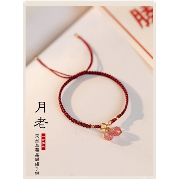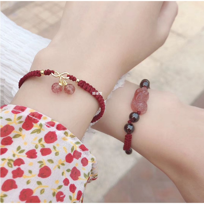 🔥現貨,無限招財/貴人🔥8mm天然草莓晶櫻桃手工編織手繩手鍊女桃花石水晶手繩編織繩【開運堂】