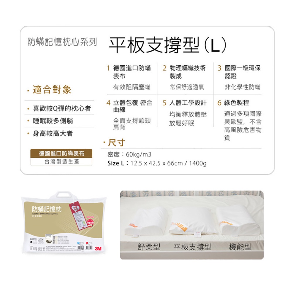 3M 新絲舒眠防蹣記憶枕-平板支撐型(L)-2入組