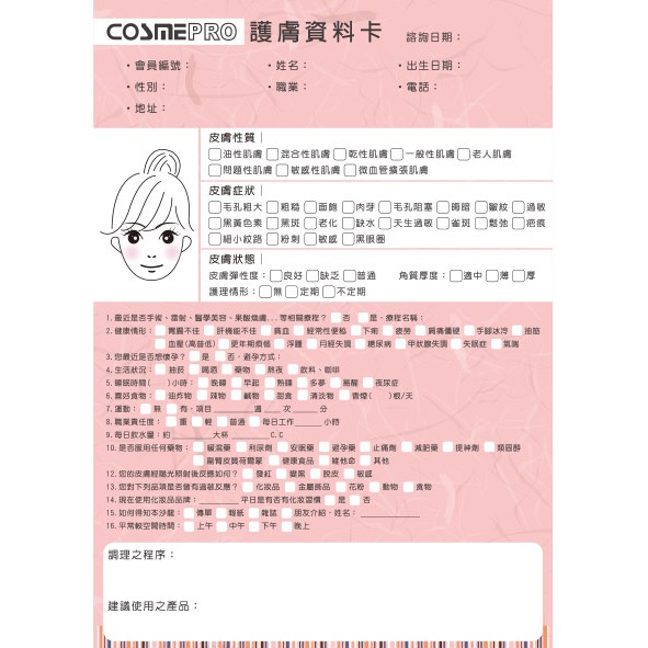 【一份55張】顧客資料卡 預約卡 客戶卡 資料卡 諮詢卡 美容卡 (道林紙)雙面印刷