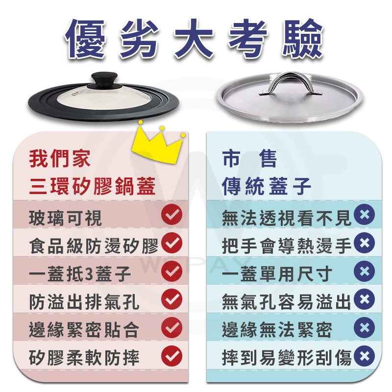 【Wepay首選】三環矽膠鍋蓋 【多種鍋具適用】 鍋蓋 平底鍋蓋 不沾鍋蓋 露營鍋蓋 炒鍋鍋蓋 玻璃鍋蓋 通用鍋蓋