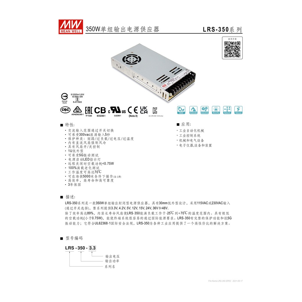 快速出貨 明緯原裝公司貨 [LRS-350-24] MW MEANWELL LED 驅動器 變壓器 含稅 開發票