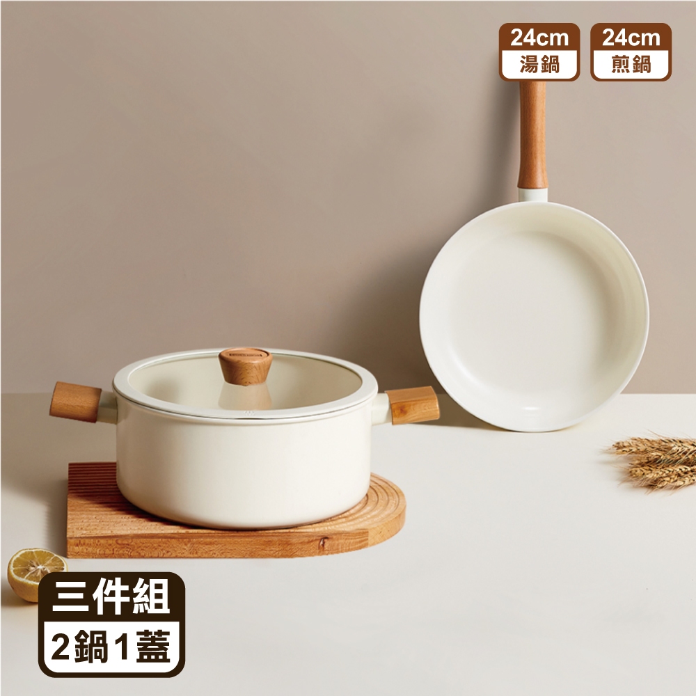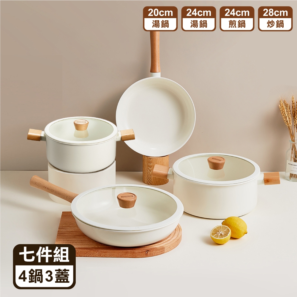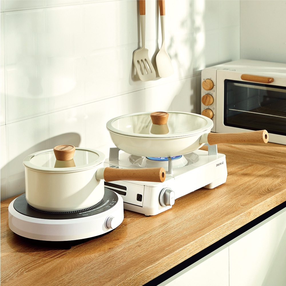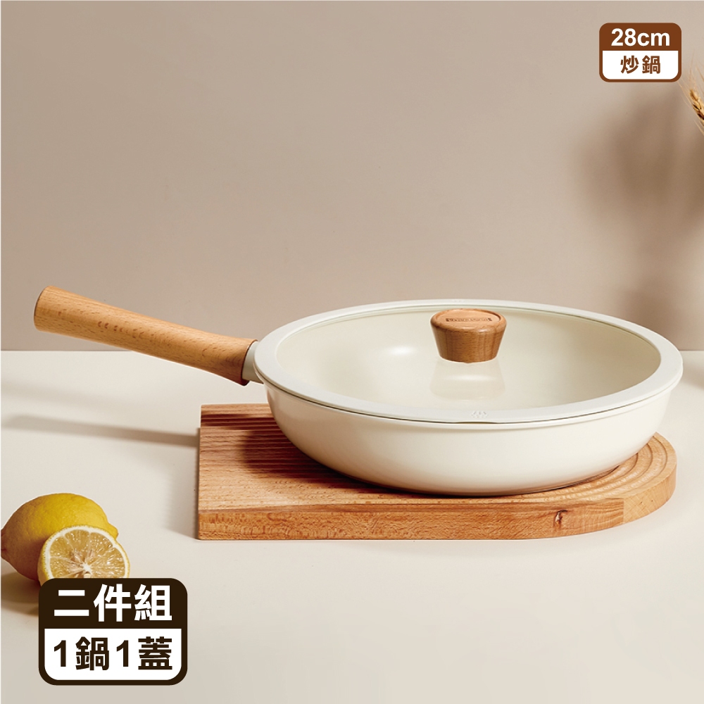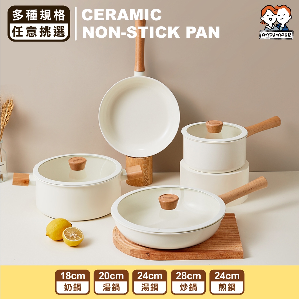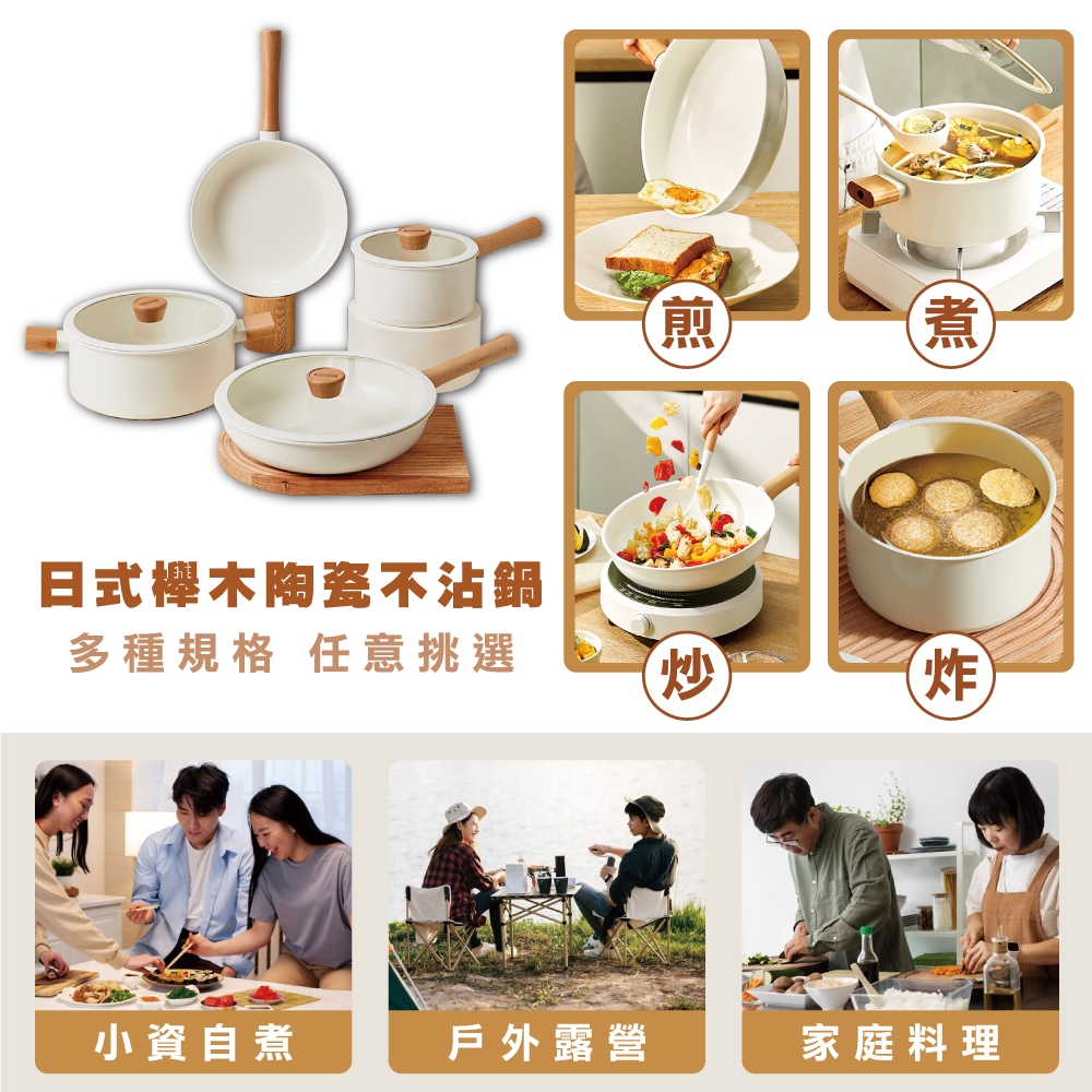 【SGS認證】✴日式櫸木柄陶瓷不沾鍋✴ 泡麵鍋 不沾鍋 平底鍋 不沾鍋炒鍋 平底鍋 炒鍋 炒菜鍋 不沾湯鍋 櫸木手柄鍋