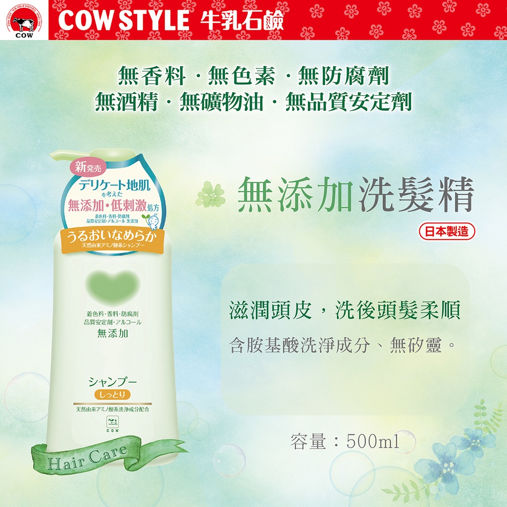 (宅配免運) 牛乳石鹼植物性無添加洗髮精(500毫升X2入組)無矽靈洗髮精 無香料 無色素 無防腐劑 無酒精 無礦物油