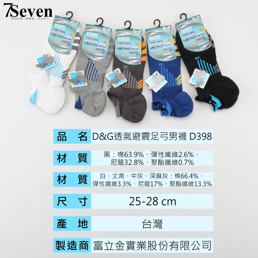 D&G透氣避震足弓船襪 25-28CM 男襪 足弓運動襪 富立金台灣製【77socks】D398