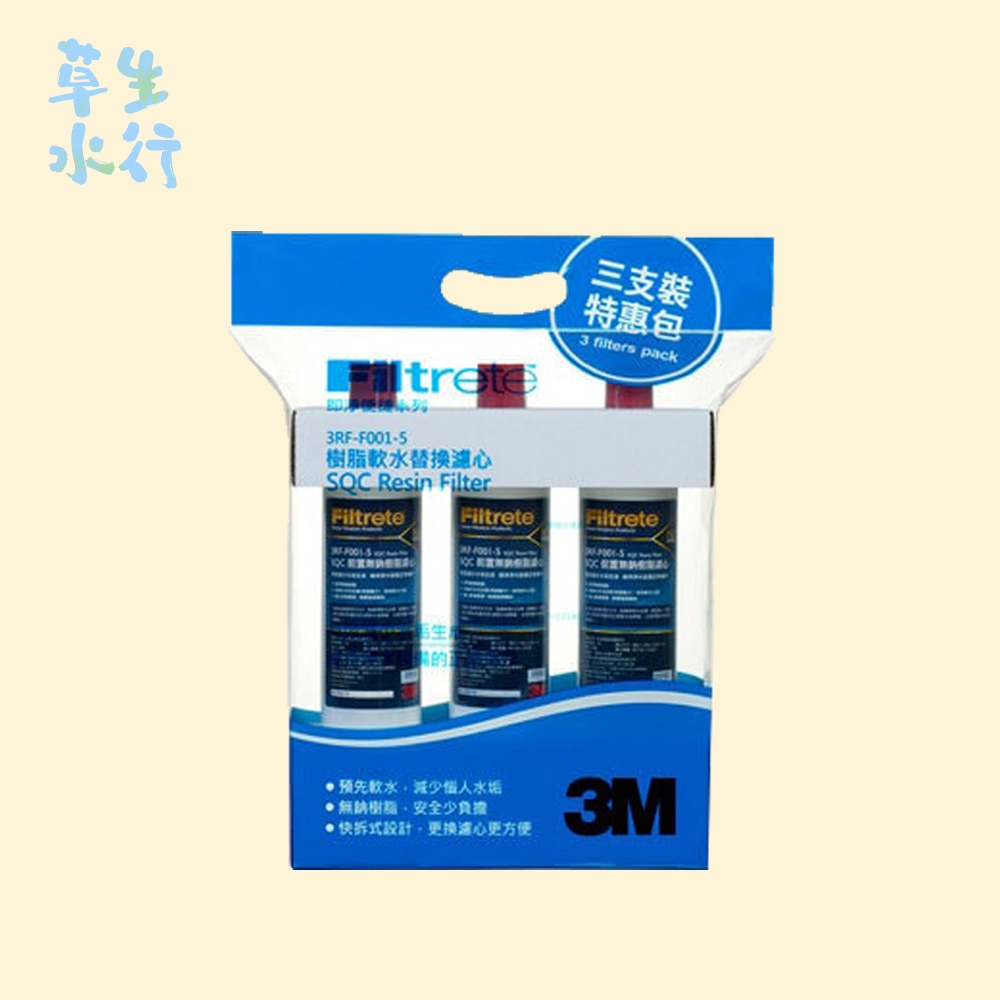 3M 3RF-F001-5 SQC樹脂軟水替換濾心(3入) [保證3M原廠最新公司貨,有條碼 封條]