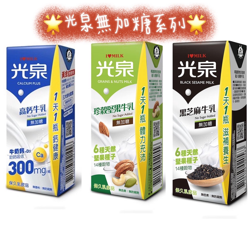 光泉無加糖調味乳系列(高鈣無糖/黑芝麻/珍穀堅果)200mlx6入組