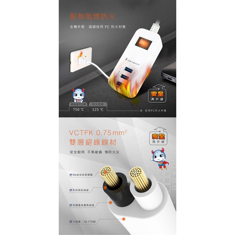 【聖岡USB智能延長線】急速充電 延長線 投保5000萬責任險 USB延長線 總開關 USB充電 智能分流【LD707】