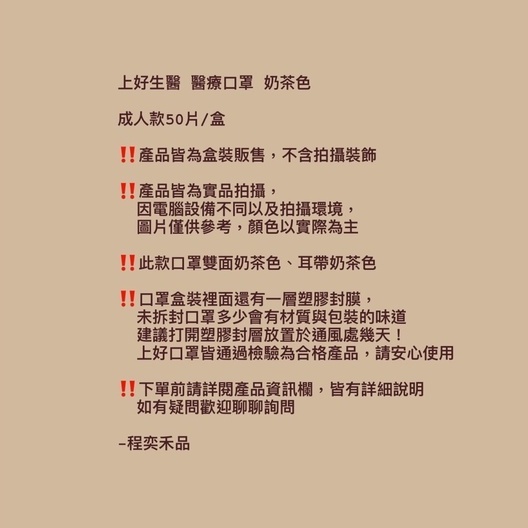 【程奕禾品】上好生醫口罩⭐️奶茶色/附電子發票